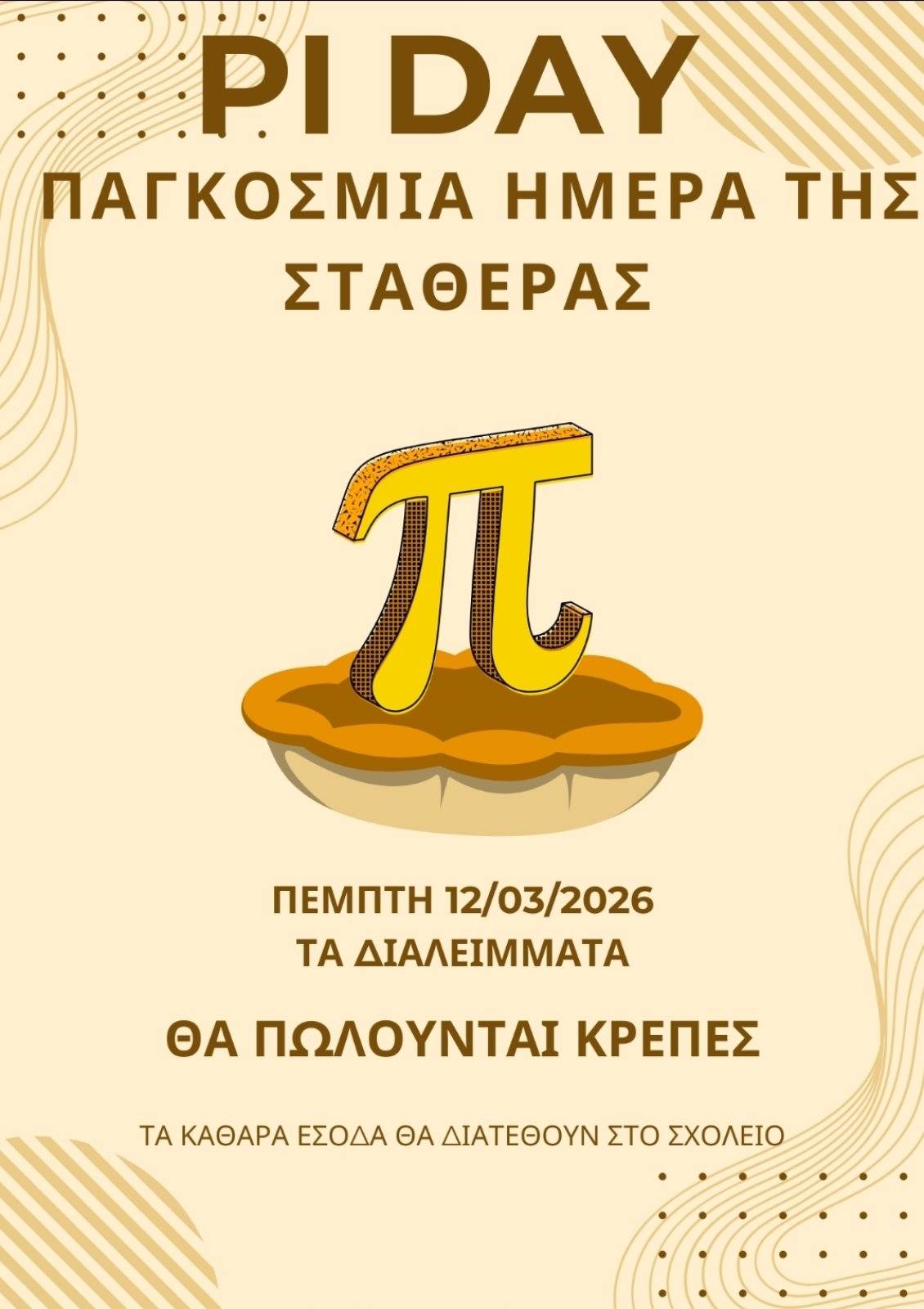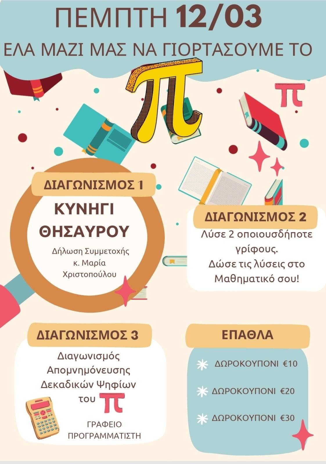 Την Πέμπτη 12/03 γιορτάσαμε την Παγκόσμια Ημέρα του π με μαθηματικές δραστηριότητες και διαγωνισμούς που ενθουσίασαν τους μαθητές μας!