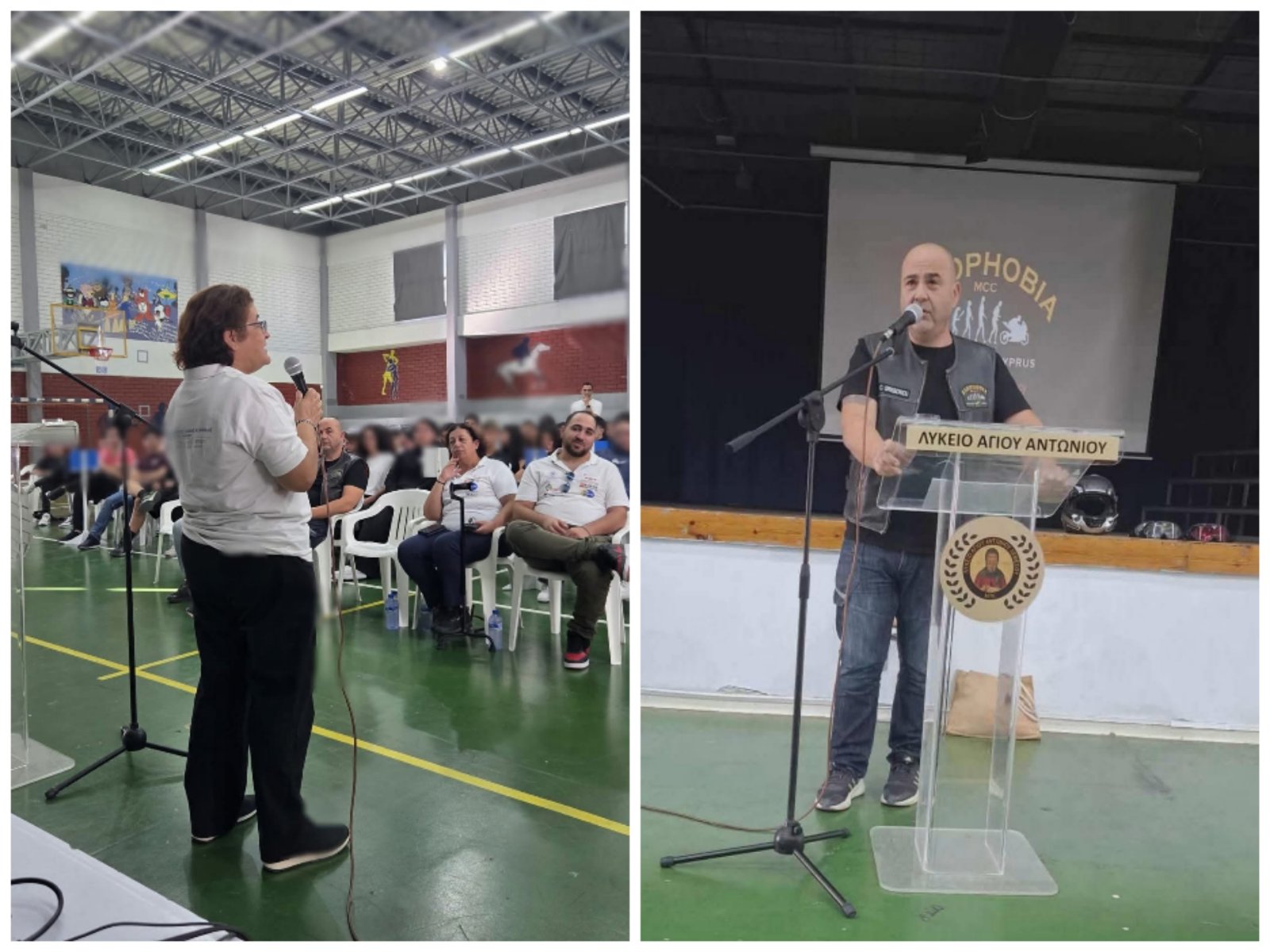 Την Τετάρτη 29 Οκτωβρίου εκπρόσωποι της Τροχαίας Λεμεσού, των Φυσιοθεραπευτών, των Εθελοντών που βίωσαν άμεσα ή έμμεσα τις συνέπειες της έλλειψης οδικής συνείδησης καθώς και των Εθελοντών του συλλόγου «Εγωφόβια» ενημέρωσαν τους μαθητές/ μαθήτριες της Β΄και Γ΄τάξης για τη σημασία της οδικής ασφάλειας και την τήρηση των κανόνων οδικής κυκλοφορίας. Στόχος της συνάντησης είναι η καλλιέργεια οδικής συνείδησης που είναι άρρηκτα συνδεδεμένη με το σεβασμό στην ανθρώπινη ζωή.
