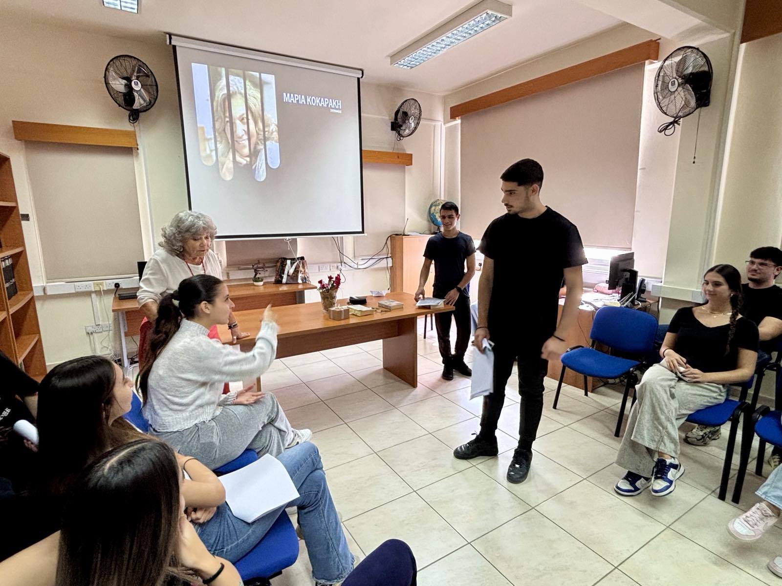 Η λογοτέχνης και φιλόλογος Μαρία Περατικού Κοκαράκη που τιμήθηκε το 2014 από το Ελληνικό Ινστιτούτο ΕΛΛΙΕΠΕΚ ως «Άνθρωπος του Πολιτισμού και των Γραμμάτων» επισκέφθηκε το Σχολείο μας την Πέμπτη 6 Νοεμβρίου 2025. Μέσα από το βιωματικό εργαστήρι που πραγματοποίησε κατέθεσε την ψυχή της και θεμελίωσε την ηθική υποχρέωση του «Δεν Ξεχνώ»! Τόνισε ότι η γενιά που έζησε τον χαμό φεύγει σιγά σιγά επομένως οι επόμενες γενιές οφείλουν να μαθαίνουν από την ιστορία, να θυμούνται από τις διηγήσεις και να κρίνουν όσους λησμονούν.