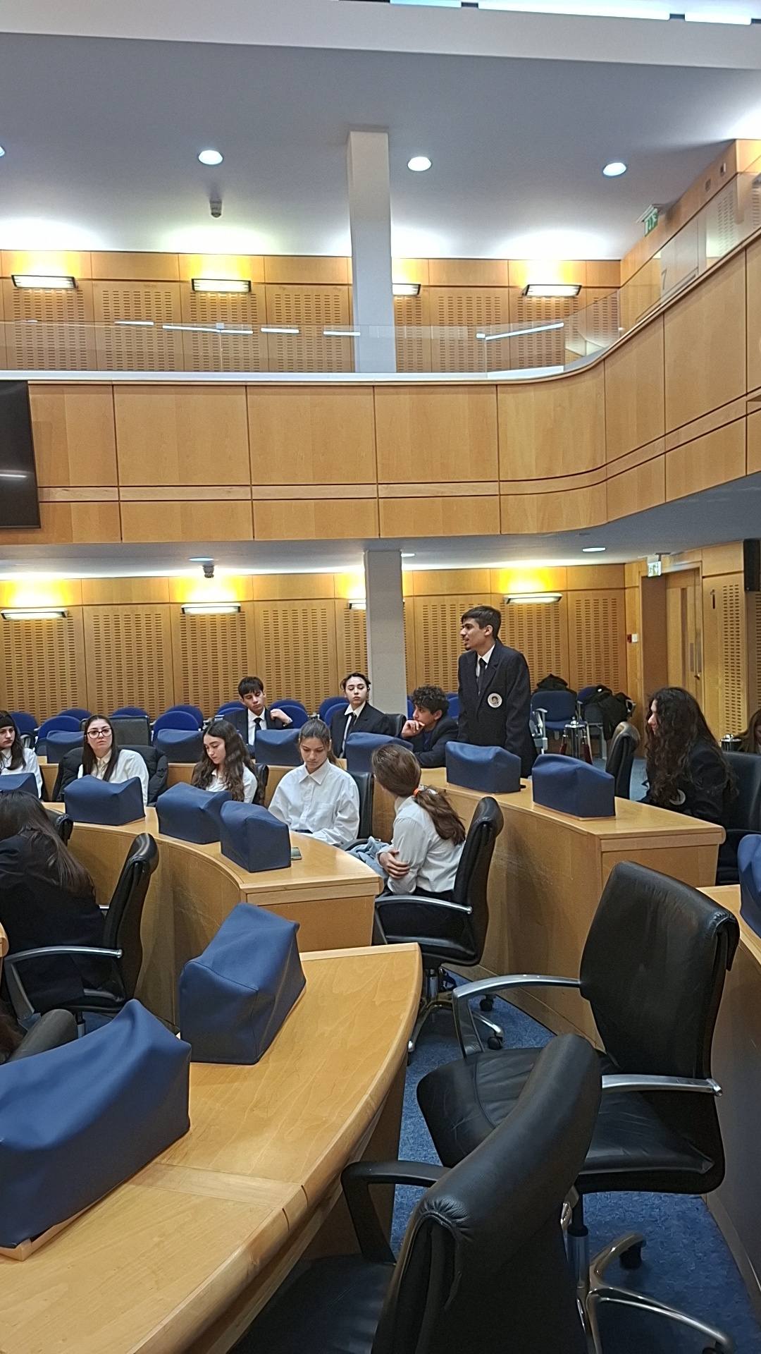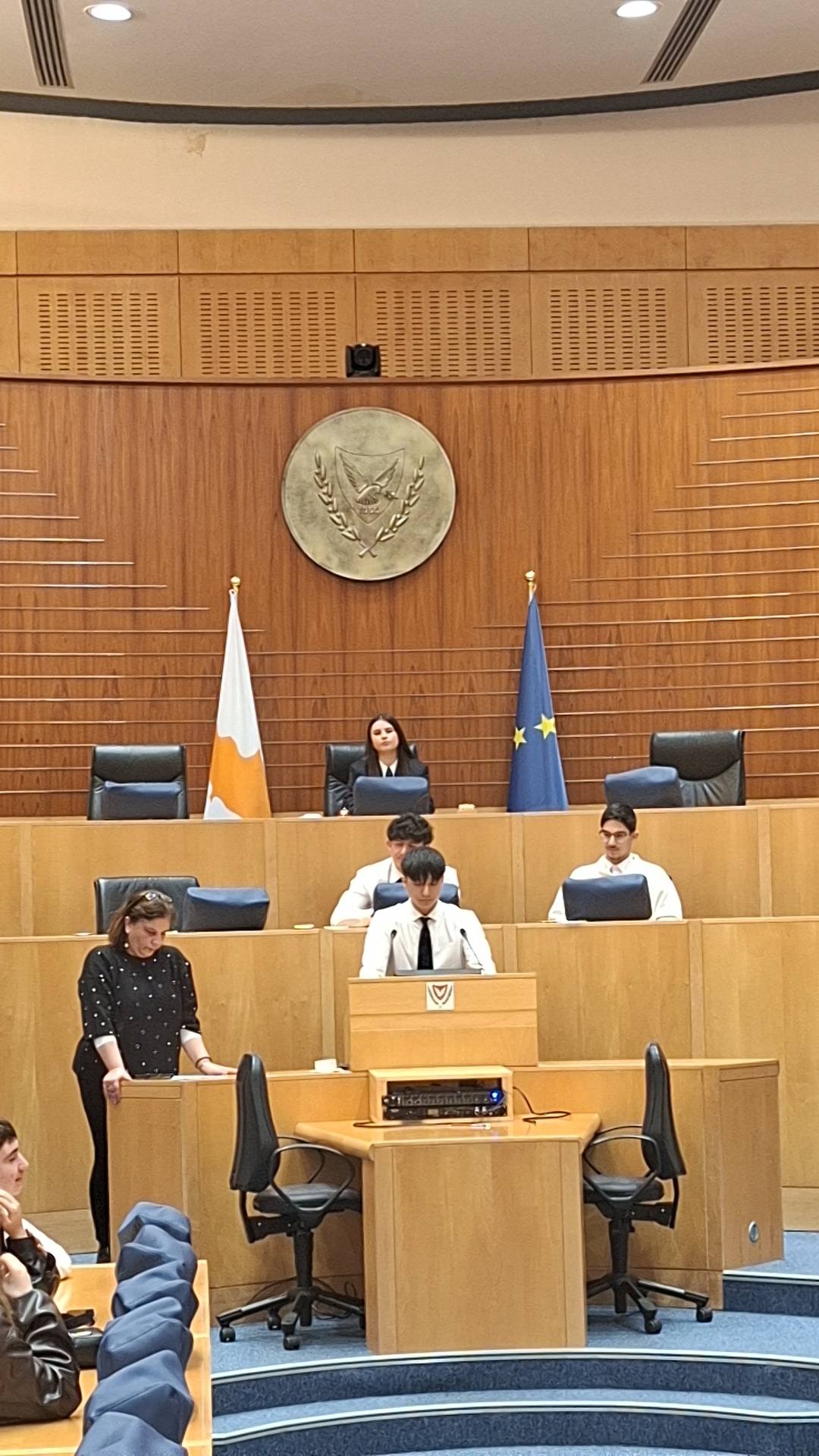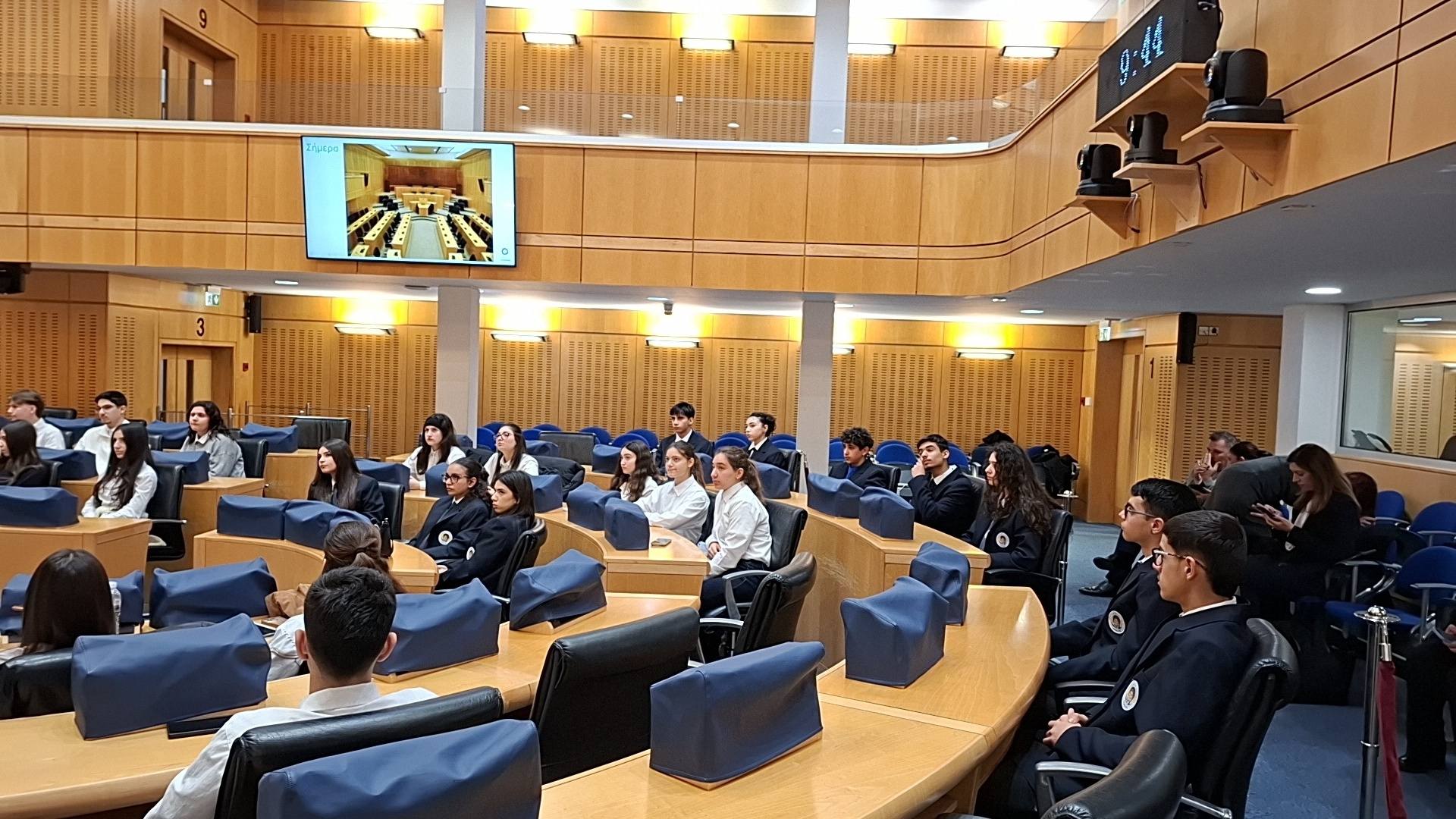 Οι Πρεσβευτές του σχολείου μας είχαν την τιμή να επισκεφθούν τη Βουλή των Αντιπροσώπων, όπου ξεναγήθηκαν στους χώρους και γνώρισαν από κοντά τον τρόπο λειτουργίας της. Οι μαθητές είχαν την ιδιαίτερη ευκαιρία να ζήσουν προσωπικά την εμπειρία μιας συνεδρίασης της ολομέλειας, συμμετέχοντας ενεργά σε συζήτηση για ένα σημαντικό και επίκαιρο θέμα: τη μείωση της σπατάλης τροφίμων στην Ευρωπαϊκή Ένωση και στην Κύπρο, καθώς και την πιθανή υποχρέωση των υπεραγορών και των εστιατορίων να δωρίζουν το αδιάθετο φαγητό σε κοινωνικές δομές.